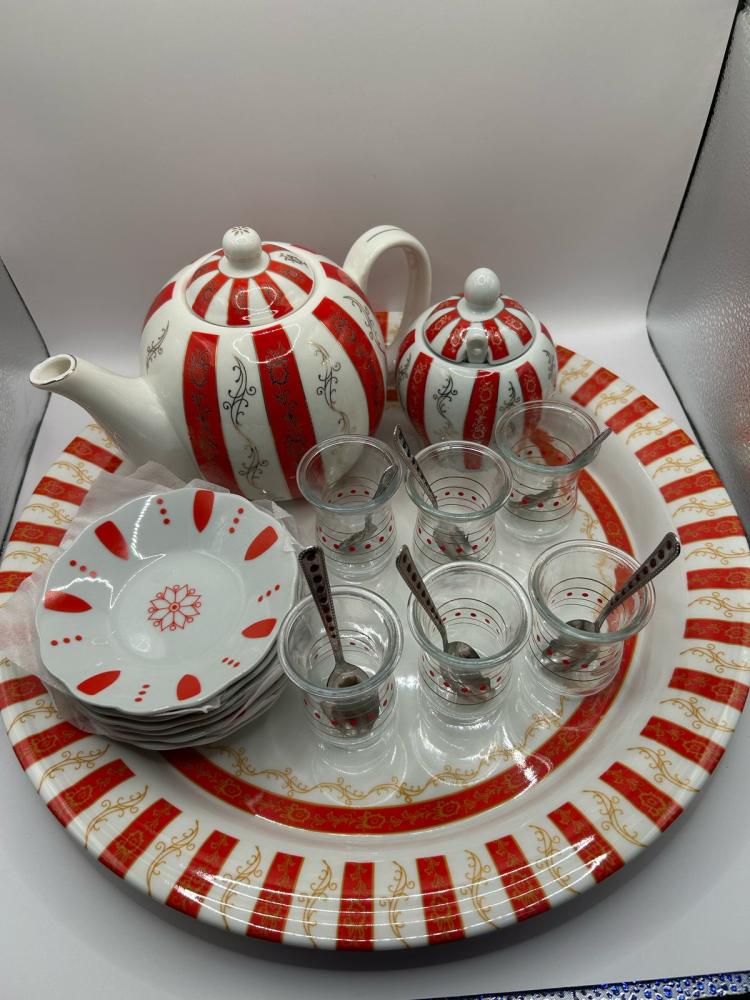 - 6 صحون تقديم: متناغمة مع تصميم الاستكانات.